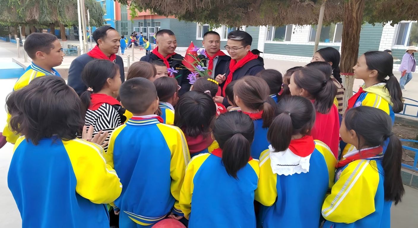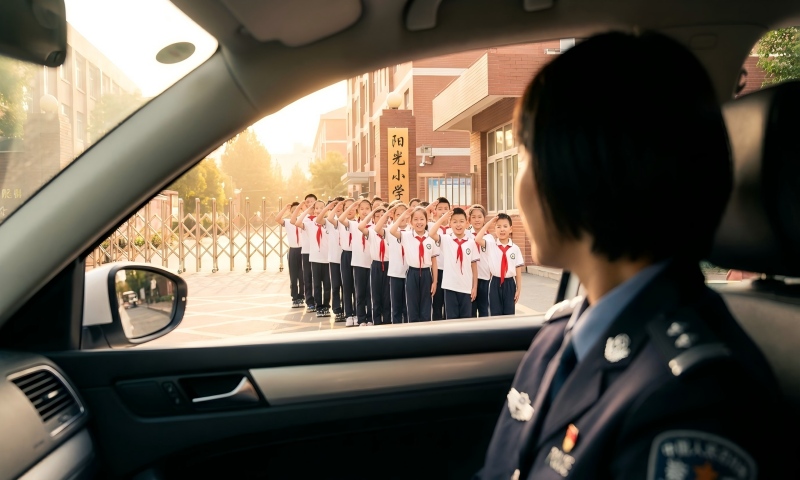 民警到学校开展禁毒宣传教育,结束后孩子们和民警敬礼告别